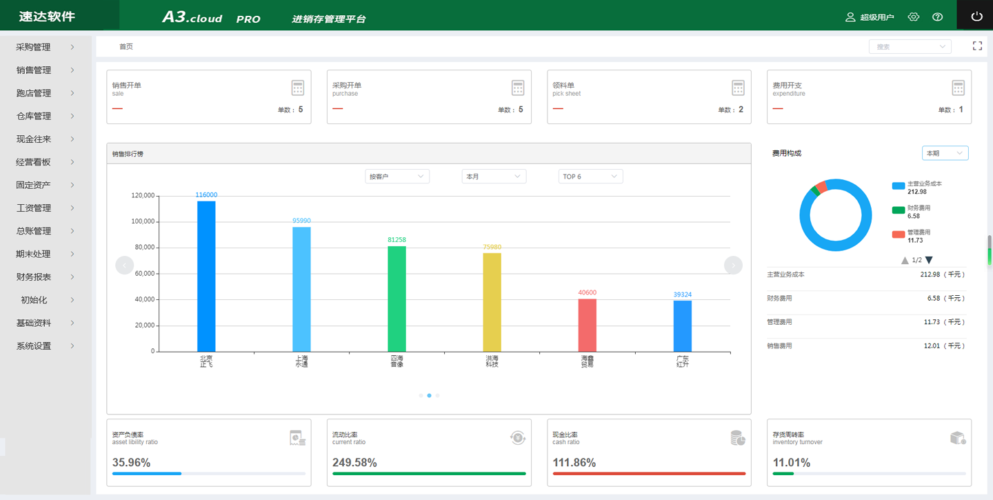 速达A3.Cloud PRO 进销存管理系统 一套完整的企业业务管理系统,系统有机的将企业进货管理、销售管理、仓储管理、财务管理融为一体,并科学地融入Builder-II二次研发工具,有着极好易用性和实用性,全面提升了企业的管理能力和工作效率。
