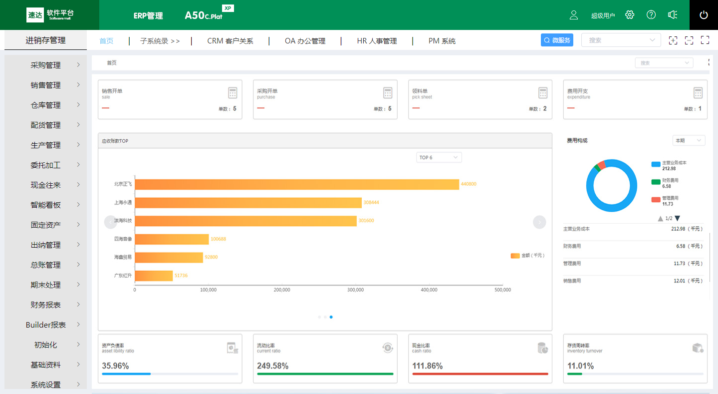 速达 A50C.Plat ERP 管理平台是一套完整的企业资源管理系统。系统高效的实现了强大的供应链管理能力及生产管理模块有机的将客户管理、财务管理相结合,并科学地融入Builder-II二次研发工具,有着极好易用性和实用性,全面提升了企业的管理能力和工作效率。