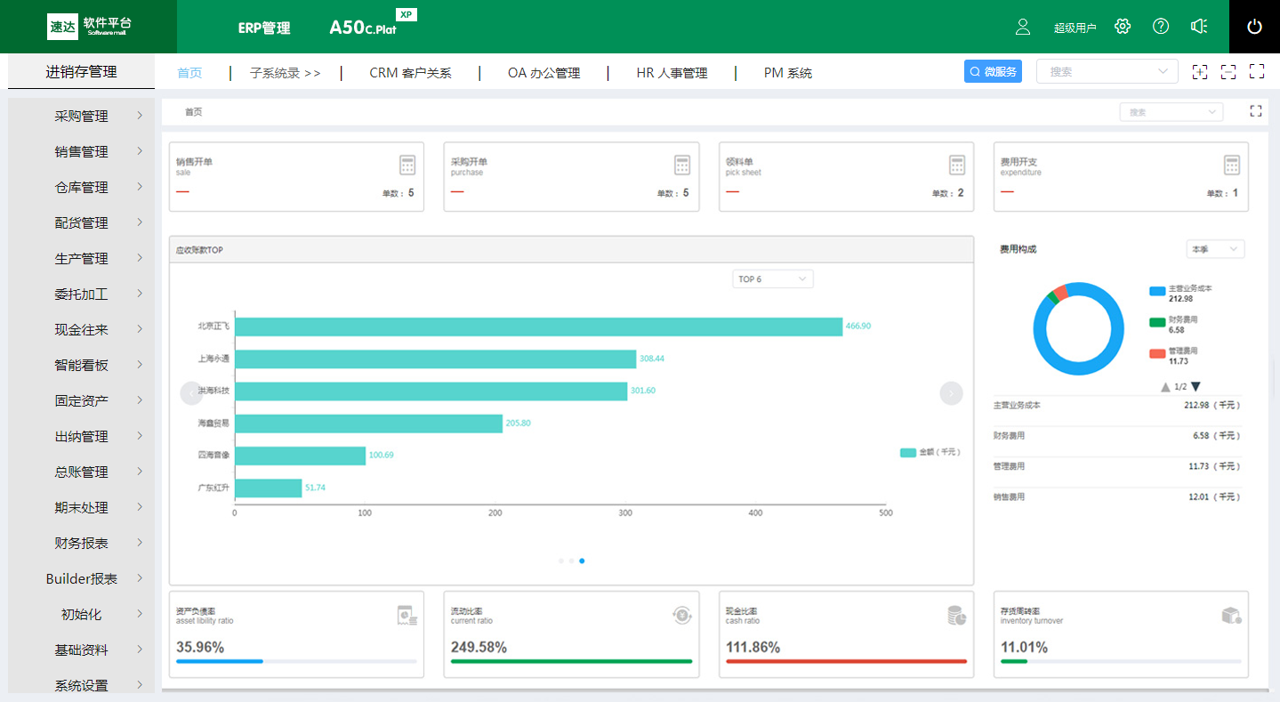 速达 A50C.Plat ERP 管理平台是一套完整的企业资源管理系统。系统高效的实现了强大的供应链管理能力及生产管理模块有机的将客户管理、财务管理相结合,并科学地融入Builder-II二次研发工具,有着极好易用性和实用性,全面提升了企业的管理能力和工作效率。