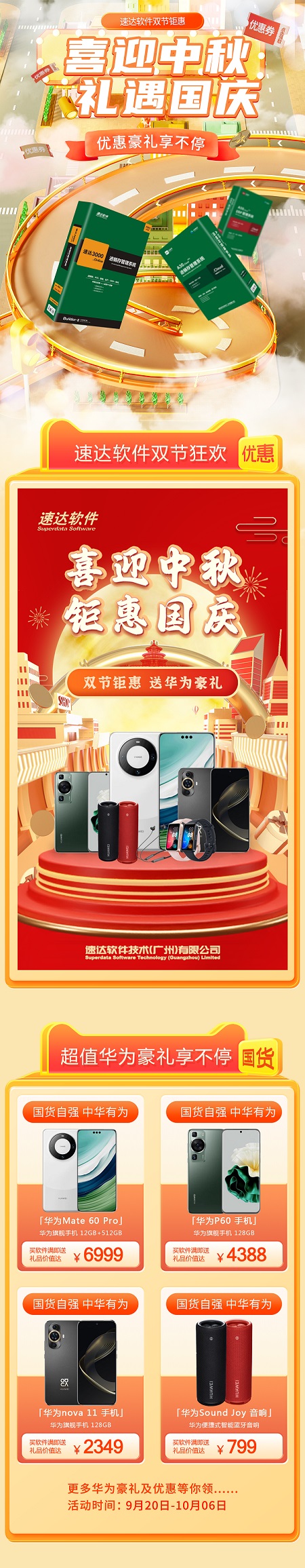 惠聚中秋,礼遇国庆。购速达软件,享华为Mate60等豪礼!