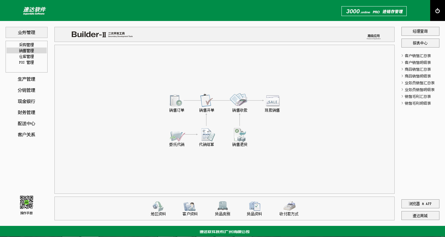 速达3000.Online PRO 集进销存、POS、财务、生产、CRM为一体的中小企业管理软件。软件支持云部署和桌面服务器部署及APP部署,并科学地融入Builder-II二次研发工具,满足企业管理的个性化需求,大大提升了应用效率和安全性。 软件支持局域网/互联网多用户应用,实现异地多机构、多店面、多仓库等远程应用,支持APP移动端应用,数据实时同步,安全、稳定、高效、易维护。