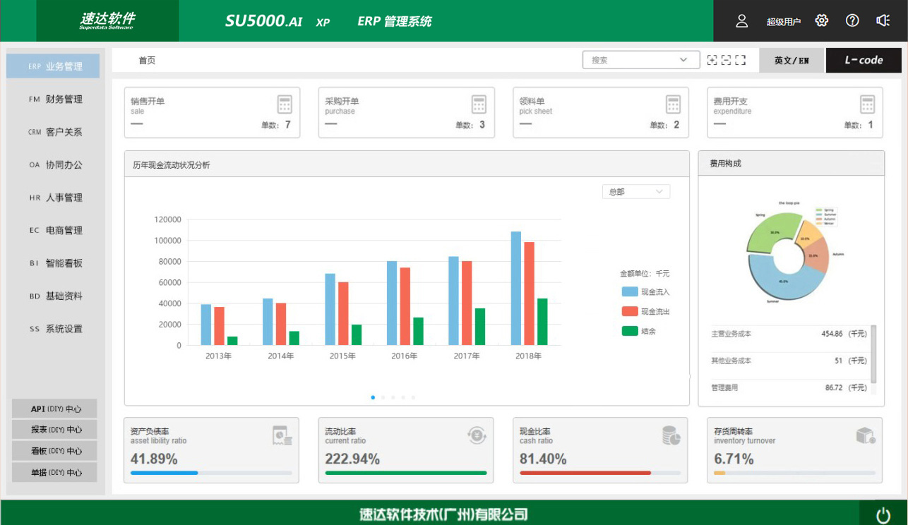 《速达S5000.AI》 ERP管理系统是一套基于云应用的 AI 系统,它可云部署或 PC 端部署并支持移动端应用,堪称中小企业管理软件大全。 《速达S5000.AI》 强大实用的管理功能为企业业务发展带来很好的帮助,全面提升企业运行的效率系统的 AI 思想将实现企业个性化应用成为可能,IC 智能配置、AI 编程、API数据接口开放、多语言应用让管理软件适应时代的要求。